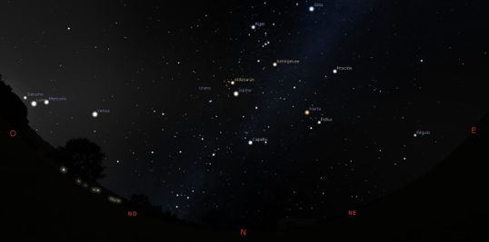 Desde 18:25 hasta 18:45: Todos los planetas se podrán observar, siempre y cuando se encuentre en un lugar completamente oscuro y libre de contaminación lumínica. Cabe destacar que a partir de las 18:45, Saturno se ocultará bajo el horizonte, marcando el fin de su aparición esa noche.